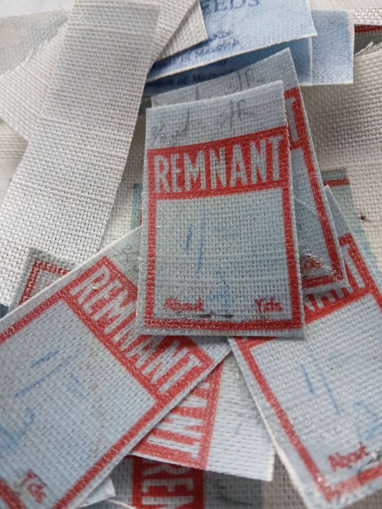 With these pieces, I’ve worked with the fabrics from one source only, one stash, one collection. I’ve tried to include the labels, the construction marks, to imagine what was being made or unmade.