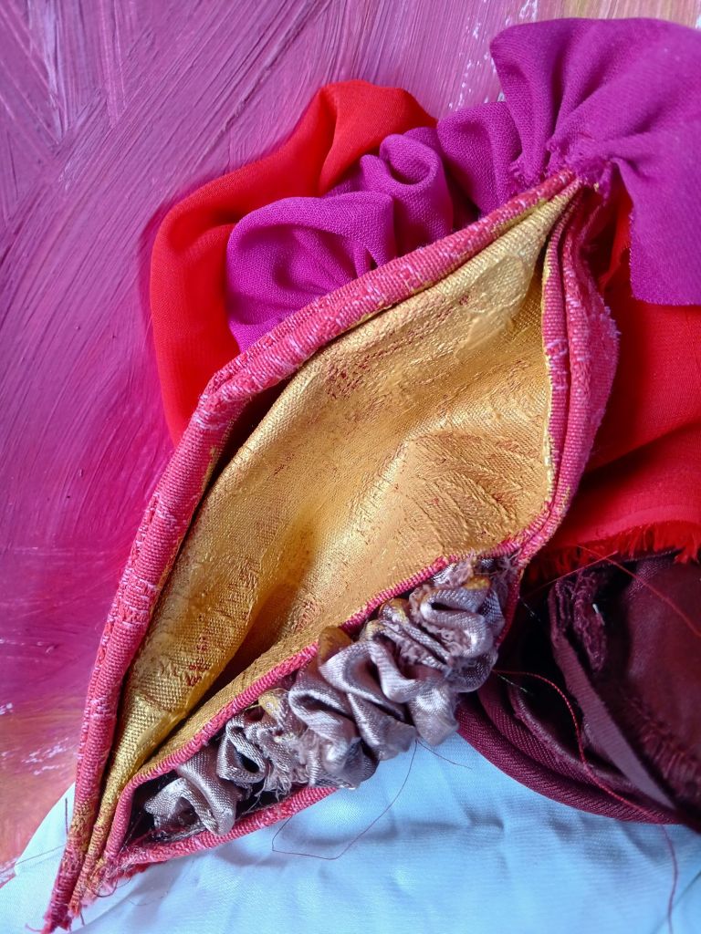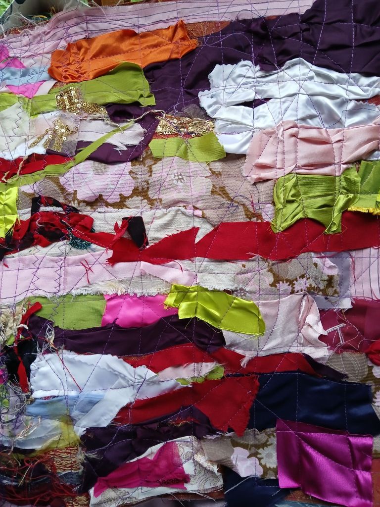 Above: 3D textile work using stitch, paint, fabrics and beads