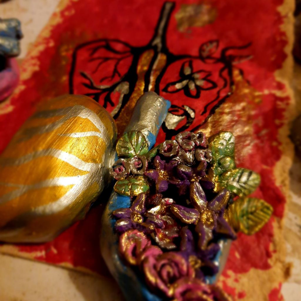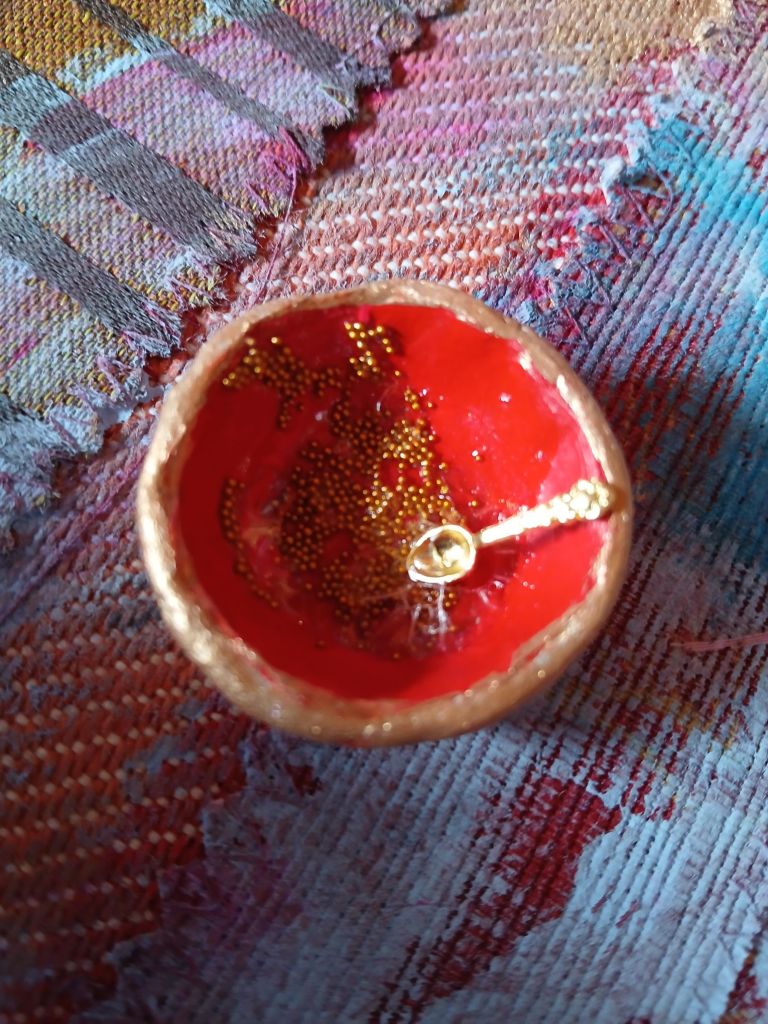 Above: 3D mixed media using clay, textiles, print and paint