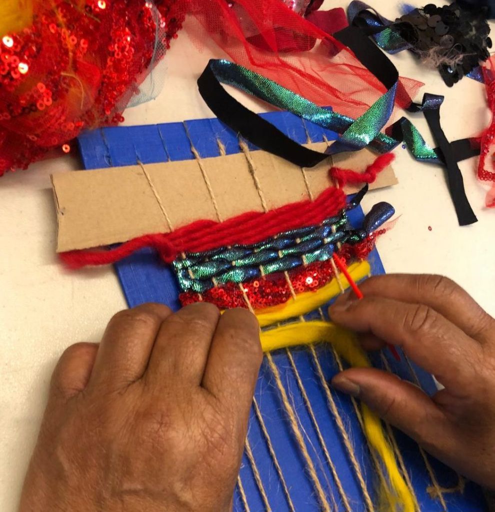 Above: Print, fabric dyeing and weaving workshops led by Alison, with Make Good Arts, 2024.